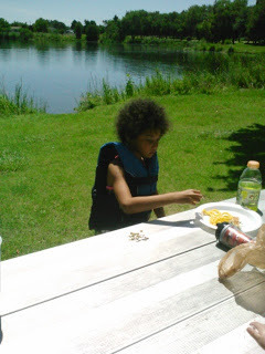 Of course as soon as we got there we forgot about the camera and jumped in the river.. It's so hot outside x.X But after we cooled off we decided to have some lunch! We shared a a big sub sandwich and a bag of onion rings >^.^<