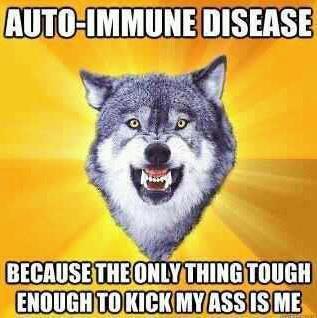 Immune system disorders. My goodness, there are thousands of them that put our bodies in battle with ourselves. Stay tuned for more health updates! I know they are fascinating (tongue planted firmly in cheek).