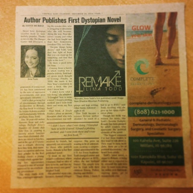 filming is over, lol. *shaka*I was interviewed by my local CBS station. They came to my house and we sat down to talk about everything from writing to Remake to homeschool to Hawaii. Since the reporter and cameraman have ties to Hawaii, we had a great time talking about the islands, making me miss home. :) You can watch the interview here.