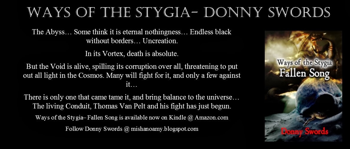 Just for fun, I have posted excerpts from four of my novels. Two are available now, The Bitter Ends and Fallen Song. Cult of Morgod (pending release) and The Vampire Faus, Dragon Stone (still in progress). Click below to get The Bitter Ends. Apple, Kobo, Sony, Epub, PDF, iPad, and many more formats. Available at Smashwordswww.smashwords.com/books/search?query=Donny+SwordsAmazon http://www.amazon.com/s/ref=nb_sb_noss_1?url=search-alias%3Daps&field-keywords=Donny+Swords&sprefix=Donny%2Caps&rh=i%3Aaps%2Ck%3ADonny+Swords