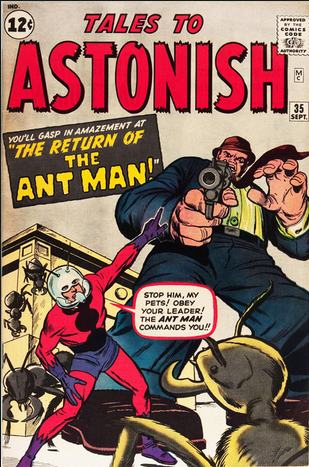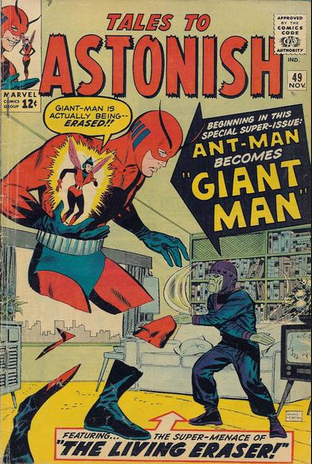 Ant-Man premiered in one of those monster stories, way back in TALES TO ASTONISH #27. He was just a scientist then, no costume, no ‘super-power’. Later, when Marvel adopted super-heroics in a huge way, they put a costume on Hank, and presto, Ant-Man was born.