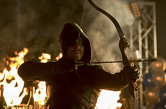 [Oliver Queen is the Arrow. He gets to wear a mask 'and' a hood.]An honorable mention should go to The Walking Dead, where Daryl Dixon has done more to popularize crossbows than anyone since William Tell.