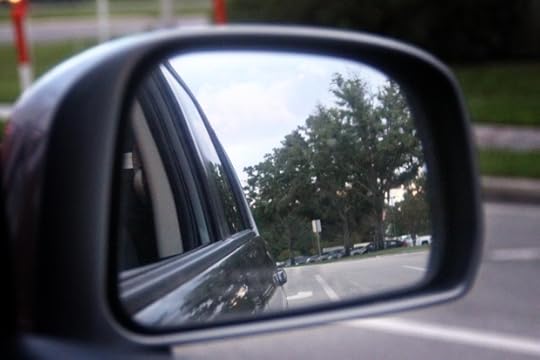 I even remember the first time years ago when I noticed the smudge on the rear driver’s side window, which was shaped into a leaping dancer—a dancer in white. I would watch her move through the trees in El Cajon Valley, bob my head up and down to help her jump over hillside terraces of Spring Valley, and keep her from crashing into the Westfield mall sign two miles from my mom’s home.