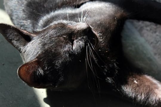 Everyone started laughing. The 16-year-old black cat, Sammy, had fallen asleep on the bookshelf behind us and gradually slipped over the edge until he abruptly dropped to the floor. As the students laughed, we all watched Sammy shake his head a couple times, stunned from the impact, trying to shake off the rude awakening. Then he padded into the next room as though nothing had happened.