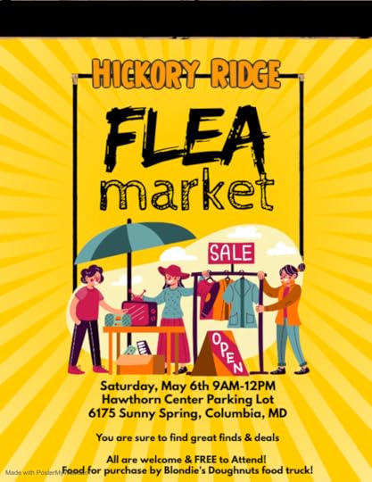 I’ll be hawking and autographing my books at the Hickory Ridge Flea Market between nine a.m. and noon on Saturday, May 6. Here’s the announcement: