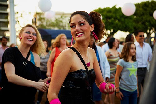 Calling all gals! Calling all fellas! Are you looking for love? Do you work in entertainment, TV, music, or the movies, but you’re finding it difficult to find the man or the woman of your dreams? Is toiling in the dream factory destroying your mojo? My advice is to leave Hollywood and enter Los Angeles. True, one is a subset of the other, but it’s also a mind-set. I have concrete advice that will get you on point immediately. Working in the entertainment industry is exciting and wonderful, but when you’re in Hollywood and everyone is chasing the brass ring, a few attitudes can sneak into your life without you realizing it. Years ago I read a line in an article in LA Weekly that stuck with me -- “If you’re at a Hollywood party, half the people there are worried that there’s a better party somewhere else that they’re missing.” I remember witnessing this first hand, when I was at the MTV Movie Awards, which was by far the biggest Hollywood party of that particular week, yet dozens of people were on their cell phones checking out what else was going on in town and planning their next move. It’s a fun roller coaster, but ten years can disappear in an instant. When my wife Robin left entertainment and joined the regular world again, she felt relief, and said -- “I’m looking forward to finding out who my real friends are.” On the flip side is Los Angeles. I remember being at an art opening at the old Wacko Soap Factory and Luz de Jesus art gallery on Melrose, and a movie star showed up with a camera crew in tow. The publicity was going to be mutually beneficial to the movie star, the artist and the gallery, but people resented the feeling that the camera’s presence somehow legitimized the event and only then made it real. I heard mutterings from the crowd -- “I hate it when Hollywood invades Los Angeles.” Now take that tension between the dream industry and the city, and lay it like a blanket over the single dating world. The over-judging, self-doubting and ceaseless worry can drive you crazy. I see so many talented and attractive young people with whom I work, torturing themselves with their Hollywood blinders on, just like I did fifteen years ago. But here’s my advice for you: If you want to find someone -- leave Hollywood and go to Los Angeles.Forget the screenings, mixers, clubs and bars. Los Angeles is vast and confusing, but she’s getting better at providing a way into her mysteries. Here’s one coming up: Dance Downtown, at the Music Center
