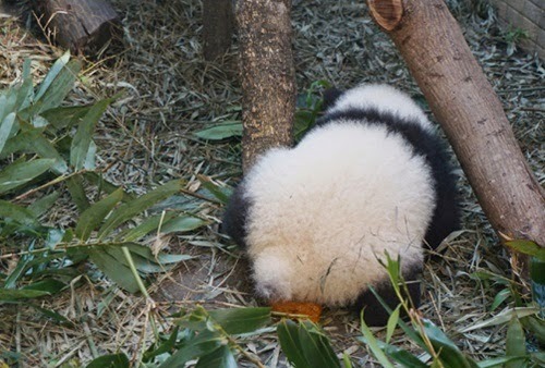Speaking of food, who wants feces and urine for lunch? Panda mom raises her paw and says, “I DO!” After she nurses her cubs, she licks them all over “down there” to stimulate them to go Number One and Number Two. And while she’s down there she hangs around for the best part…eating their poop and pee. Yum!It’s said she does that to eliminate smells, though I think a spritz of Glade air freshener beats that hands down. Note to Panda moms: You’re taking “odor eaters” a bit too literally.