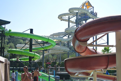 I also love it for another reason. Raging Waters is America stripped bare, literally, and within the microcosm of the park the issues that separate our country disappear. Class disappears. Out in the parking lot there are Hyundais next to Hummers, and BMWs and Range Rovers next to Corollas, but once inside, there’s no way to tell who earns $200,000 a year and who earns eight bucks an hour. You can be a professor or a millionaire or a busboy or a high school student, it doesn’t matter. We all look the same in our swim trunks, rash guards and dorky sun hats. Race disappears. Caucasian, Asian, African, Latin, are all mixing. You hear people speaking Spanish, Chinese, Vietnamese, English, Korean, and we all laugh and scream and giggle and yell at our kids “don’t run!” in the same way. Most importantly, all pretense disappears. At a water park, there is no roller coaster car to protect you; you either ride on a mat, or you sit in an inner tube, or it’s just your flailing body hurtling down a rushing wall of water that rockets you through dark tunnels and then spits you out over the falls. You feel scared, thrilled and embarrassed all at the same time, and after you splash down and climb out, the adrenalin still courses through you. That’s when I turn to my daughter and we laugh out loud, our faces beaming, and we dash to the next line and join the other giggling riders anxious to do it all over again. The last time I saw a line of such happy people was at my daughter’s primary school, watching the 1st and 2nd graders line up at recess. Adult lines are never this happy. People don’t grin when they line up at the DMV. There’s a natural sense of fairness that happens when kids line up. In grade school, front cuts are never allowed, and back cuts are barely tolerated. Screaming “that’s not fair!” is common at that age, and only when we’re older do we tolerate the response that “no one said that life was fair.” Adulthood is where we learn how the world really works. But although we tolerate it, that sense of fairness never disappears, it just falls dormant within us, until something happens that makes it reappear. And that’s where the damp protest comes in. Raging Waters has instituted a “fast pass” line this summer. If you pay double the regular admission fee, you get a plastic wristband and you don’t have to wait in line on certain rides. When my daughter Lily asked why those people got to go ahead of us, I explained that they paid twice as much money, so they get to cut the line. I then asked her how she felt about that. Her gut reaction was the same as on the playground -- “that’s not fair.” Her grade school belief that “cutting the line” was wrong turned out to be shared by a lot of adults at the park as well. When we got to the front of the next line for Raging Racer, we had to wait for the people exiting the ride to hand us their mats, so we could have our turn. Two people wearing “fast pass” bands came up alongside, and they put their hands out, expecting to be handed mats ahead of everyone in line. After all, they had paid extra. The first person coming off the ride refused to hand the mat over, and pushed his mat into the hands of the person at the head of the regular line. The second person coming off the ride saw that, and immediately copied him...and then so did the third through the eighth person coming off the ride...and the trend took off. This spontaneous protest happened without a word. No one shouted “no cuts,” or “that’s not fair.” No one slapped “high fives” or pointed. Everyone continued to be polite. The people in second class simply refused to cater to the people in first class. An employee from Raging Waters was standing there to enforce the new rule, but it quickly became clear that she could not. Eventually, the people who paid more did get their mats, but I could tell they were uncomfortable. They felt...shame. The protest went viral and spread to other rides, and for the rest of the day I saw many “fast pass” purchasers awkwardly waiting to get mats and rafts from the second class people, who refused to participate. I am not against exclusivity. Country clubs have their place, and so does first class on an airplane. But with country clubs and other places of privilege, your money buys “separateness” from the masses, where you can enjoy greater creature comforts with other wealthier people like yourselves, behind walls or curtains, and avoid encountering average folk. The masses are not in your face, and your wealth is not being shoved in theirs. The people who bought the fast passes had done nothing wrong either; if we had been out in the real world, where class, race, and pretense insulate and separate us, the masses would have accepted this two-tiered system without complaint. But because class, race and pretense had disappeared, that dormant sense of grade school fairness had spontaneously reappeared. The equality of the playground trumped all rules, and it became impossible for the employees to enforce the new policy. It felt a bit like grade school as well; after all, everyone is wearing damp shorts, rash guards and dorky sun hats. When the “fast pass” purchaser thrusts out his wrist to show that he’s wearing a band that proves he should get the mat first, it’s hard to take him seriously. However, as our society divides further into the haves and the have-nots, it seems that “fast pass” and “first class” lines will pop up in more places where the general public gathers. Wealth won’t be used to just buy an exclusive place or an exclusive product that the masses can’t have. Wealth will be used to first “dibs” on what everyone else must wait for. I can imagine it starting with beach parking lots, the line at the pharmacy and the banks, and checkout lines at the mall stores at Christmas time. In the past, this would never have been imagined -- we all wanted to appear to