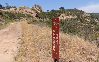 Once you reach the Pacific Coast Highway, make a right, head north and enjoy the Pacific Ocean views until you reach Corral Canyon Road. Make a right. Most people stop and hike in Solstice Canyon, which is at the bottom. Instead, keep driving up Corral Canyon to the very top of the mountain. It’s a steep road, and it will take ten minutes to get to the top and you’ll pass a few dozen homes. Just when you think you’ve made a wrong turn, the paved road will end. Keep going for another 200 yards and you’ll find a parking lot. You have found a spur of the Backbone Trail, which runs along the top of the entire Malibu Mountain Range, from Will Rogers State Park at one end to Point Mugu at the other, 68 miles total. Each section of the trail, from trailhead to trailhead, is 3 to 5 miles, making your overall hike 6 to 10 miles.