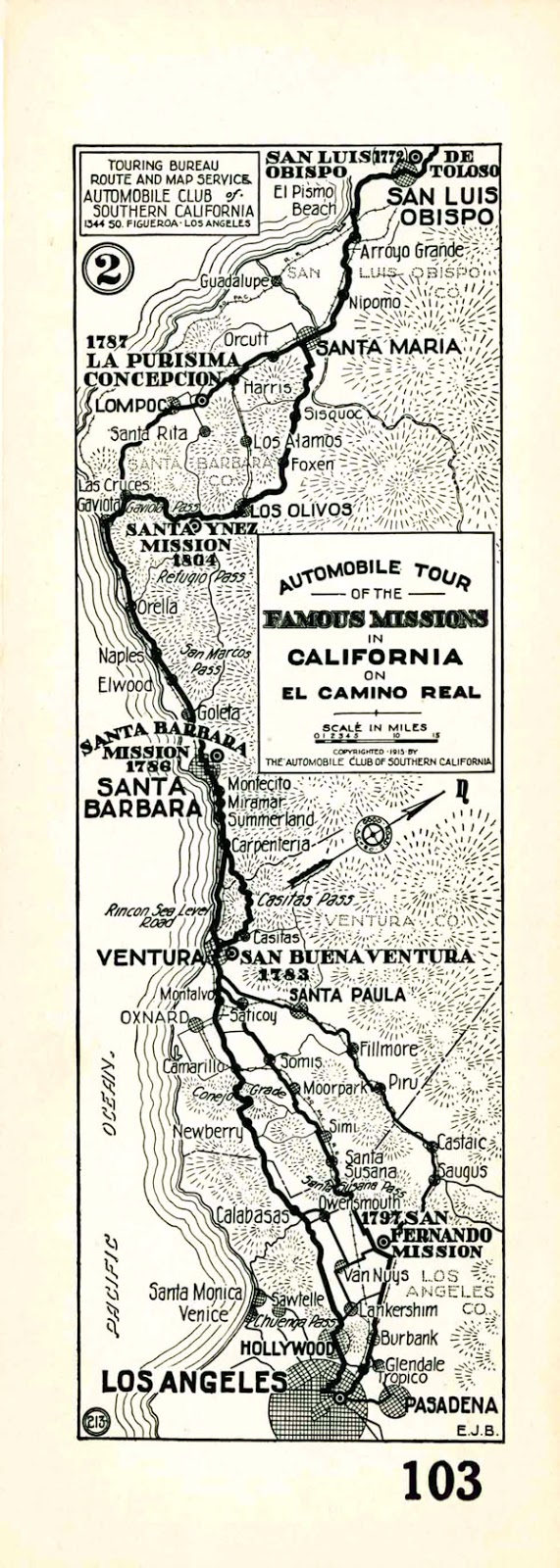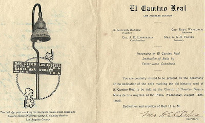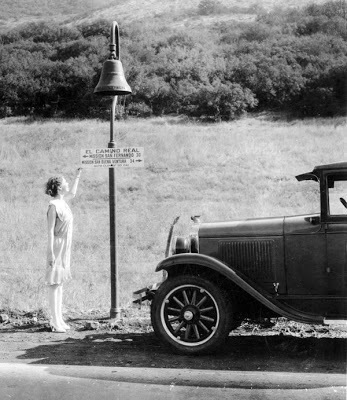 Maybe in 1955, driving along a new stretch of the 101 freeway, someone would look out their car window on their Sunday drive, coasting along and say, “Hey, look, there’s a bell marking El Camino Road! This new highway follows exactly the same path that the missionaries took when they walked north from mission to mission! This ribbon of asphalt which we coast along, reminds of the loam of the earth beneath it, where brave Californians before me once walked!”