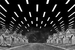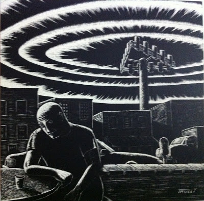 Over the last few years I have bought one original piece, one lithograph from a limited series, and a poster. A good mix, and I can say I collect California art now. His work captures a dark world where there is no escape from modern technology, yet nature and humanity manage to break through, like a blade of grass coming up through the sidewalk. His older work evoked classic Los Angeles Noir, which first drew me to his art, but I like his new pieces even better.