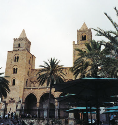 Outside Syracuse we stayed on a farm where we ate dinner with the family, and the paterfamilias leaned across the table and said in broken English, “this American war of yours, it’s a war about oil.” Suddenly nervous, I grabbed the Italian English dictionary and did my best to make conversation, and it worked. Three hours later we were polishing off a bottle of limoncello, and they were refusrf to let us leave the table. Steve was right; Cefalu was the best town (at least for us) and we were stunned that the town looked exactly like the famous mural back in Studio City. The centerpiece of Cefalu is the cathedral. It was built by the invading Normans who came to drive out the Moors, during a time when every town was reinforced to withstand attack by the next conquering army rolling through. Thus the cathedral looks like a castle, which I’m sure it was when the Normans first built it.