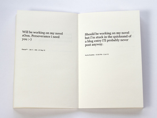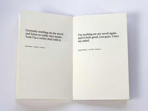 Working On My Novel is a book which is based on a twitter feed that re-tweets the best posts featuring the phrase “working on my novel.”
