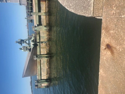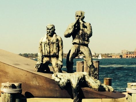 In 1991 Marisol Escobar sculpted a moving tribute to these brave men. The sculpture is off of Bowling Green in the Upper New York Bay. Three seamen are facing death and terrified. A fourth man is drowning in the water. He drowns twice a day. One of his mates extends his hand to him.