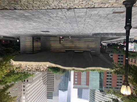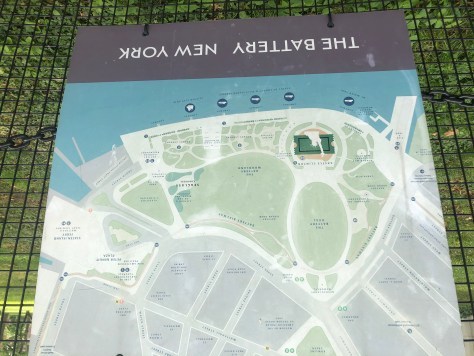 Castle Clinton is still there. Inspire of its grand name, it was a fort that never saw action. We went by the Seaglass carousel, housed under a silver covered slanted top. The park includes Hope Garden – a memorial to AIDS victims, the East Coast Memorial which consists of eight pylons that honor servicemen who lost their lives in World War ll. There’s Marisol’s Merchant Marine Memorial and the ferry that’ll take you to Ellis Island and the Statue of Liberty, not to mention Staten Island.