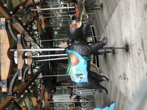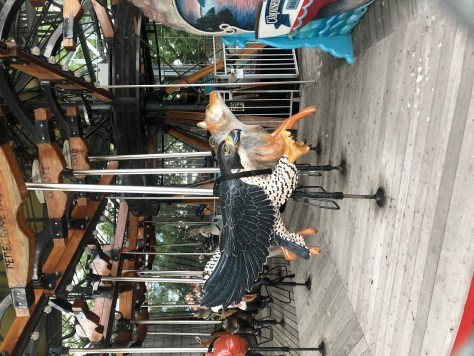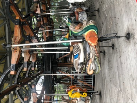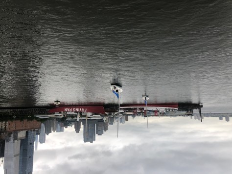 Today a friend and I walked north from 14 Street to 34 Street and then we walked south in the Hudson River Park. What a marvel. The Hudson is to your left. Luscious bushes and trees are to your right blocking you from the west side traffic. In the middle is the Pier 62 Carousel. Is NYC a carousel rich town? There’s one in Central Park and one at the Battery. There are wooden benches reminiscent of fifties movies, Stone seats, mounted chairs. The bikers, bless them, stayed in their lanes and we pedestrians in ours. I couldn’t resist Frying Pan painted large on the side of a retired lightship.