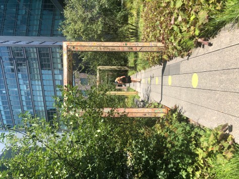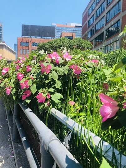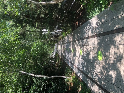 The High Line from Gansevoort to 34 Street. On a blisteringly hot Sunday a friend and I walked on the High Line for the first time in four months. She arranged the by-appointment- only-visit. Promptly at 12:30 we climbed the Gansevoort stairs and wended our way through overgrown foliage. The usual rules applied: masks and six feet of separation. It’s still fun to peer into people’s apartments or should I say condos. And to watch the flotilla of boats on the Hudson. At 34th Street we were instructed to leave.