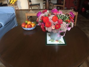 Flowers and tomatoes from a country garden