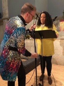A Judson Easter: music, food, fellowship: It was a zinger this year. Judson Memorial Church has wonderful music, a wonderful choir and a wonderful Music Director, Henco Espag. We had a feast of music. There was an original Easter Cantata by Rev. Micah Bucey and Henco Espag and sung by the choir, The Gardener’s Dance choreographed and performed by Brandon Kazen-Maddox, traditional hymns including The Old Rugged Cross, The Strife Is O’er, the Battle Done. Afterwards, we had our shared, pot luck feast and lots of reminiscing and greeting old friends.