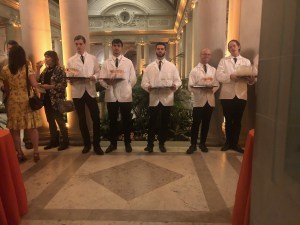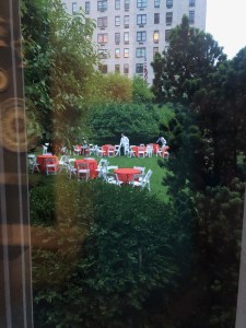May 29 was smothered in rain and gusty winds. It was also the day of The Frick Collection’s annual garden party. A friend and I have attended and enjoyed the party for years. Given the weather, I emailed him: Are we crazy? I was angling for him to suggest we not go. I’m so glad he didn’t. The Frick came up trumps. The Collection was turned into a vast indoor party. We parked ourselves on a bench in the Garden Court, under the gaze of a statue of a nymph and ate delicious hors d’oeuvres. Like most museums the Frick doesn’t serve red wine because it stains. So we made do with champagne.