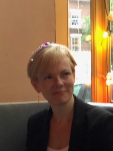 Alison von Rosenvinge wearing the Sisters in Crime crown