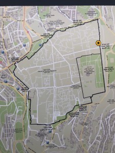 On our fourth day in Palestine, we had an all day excursion to Jerusalem. We walked on the Ramparts from Jaffa Gate to Damascus Gate. Jerusalem is a cauldron of history, religion, politics and architecture. It is exciting and chaotic to see so many people celebrating their beliefs:Jews with untrimmed beard and pe’ot, Midwesterners with Jesus written across their t-shirts, Catholic nuns in traditional habits, groups marching and singing religious chants. We went to the Church of the Holy Sepulchre, it had the enchantment of the Lexington Avenue subway at rush hour. Once again, the most fascinating spectacle for me was watching people embrace their religious beliefs. Women lay prostrate on what is deemed Jesus’s empty tomb. We, along with everybody else in the universe, including their motorcycles, walked along the Via Dolorosa to the Ecce Homo Convent where there is a portion of a Hadrian arch. Like King Herod, Hadrian was a great builder (Remember the Pantheon?)