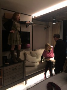 In addition to standing on tables, our hostess is also a beekeeper.