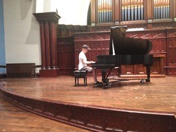 On Tuesday I listened to my favorite pianist rehearsing his Schubertiade. Michael Kelly will play two works by Franz Schubert (1797- 1828) on Aug. 18. I won’t be in Portland so Michael allowed me to attend a rehearsal at the First Congregational Church UCC of Portland where Michael is the musical director. Michael played two pieces that Schubert wrote in the final years of his life. Schubert dead at 31 because of syphilis. Here we are in the Church’s Sanctuary.
