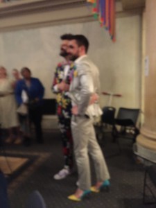 It was a busy Saturday. The Stuyvesant Town Flea Market, put on hold since 9/11, was held on a glorious spring day. The Oval, which is the center of the Stuyvesant complex, was packed with stalls, anything and everything Stuy Town residents wanted to get rid of, families and dogs. In the late afternoon I went to Judson Memorial Church for the wedding of the century. Two men, beloved by the congregation, were being united. One of the grooms’ fathers made a profound remark: Marriage does not give you license to change your partner. In marriage, you support your partner.