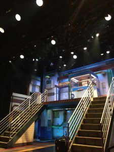 Circle in the Square has a long history which you’re reminded of while waiting in the ladies room line. Black and white photos of George C. Scott, Joanne Woodword and Vanessa Redgrave, among others, deck the walls. The Circle in the Square has moved from the original Sheridan Square site, then to Bleecker Street and now west 50th Street. The present theatre resembles a conference hall. The musical, in transit, is very American: the plot’s paper thin and predictable, lots of energy, wonderful voices and the obligatory standing ovation. The clever set is a subway station. The cast scoots in and out on stage subway cars, making use of the annoyances of NYC daily life to stir a responding reaction in the audience.