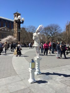 Is this Washington Square human sculpture. an expression of our times? Go figure.