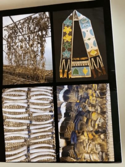 Bean Tapestry, Bandolier Bag, Turkey feather cape. Joe Baker’s photoYesterday I went to Brooklyn to see a jacket made with turkey feathers…A small band of determined Judsonites met at the Greenpoint Library’s Lenapehoking exhibit. It was given in a dark room on the top floor, six people at a time. The exhibit included several articles of clothing made from wool, feathers and beads. They date from 1830 to 1850. There were displays of bean tapestries and of different kinds of corn and beans that the Lenapes introduced to the area.