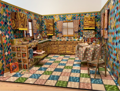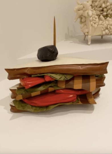 Yesterday a friend and I went to the Whitney. It’s on Washington Street. Where’s that, you say. It’s across the street from the West Side Highway and three blocks south of Fourteenth Street. The Whitney moved downtown a few years ago. On one side is the High Line. On the other side is the highway and the Hudson. The Meatpacking District, as it’s still called, was once associated with vagrancy, violence, and theft. It’s now a funky, cobblestoned neighborhood teeming with ritzy clothing stores and high end restaurants. We went to the 5th Floor and paid homage to Jasper Johns. Then to the 6th Floor exhibit: Craft in Art 1950 -2019. The minute we stepped off the elevator my spirits soared. Glorious, witty, modern art was on display. I heard a little girl say she never wanted to leave. She had the right idea.