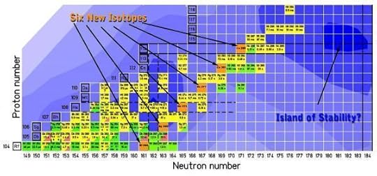 A superheavy isotope is a man-made element generated by a powerful, transient interaction between naturally occurring elements. Currently, six superheavy isotopes have been discovered and incorporated into the periodic table. Because these elements are generated in fractions of a second and then quickly decay into other molecules, it is very difficult to prove that they ever existed at all.