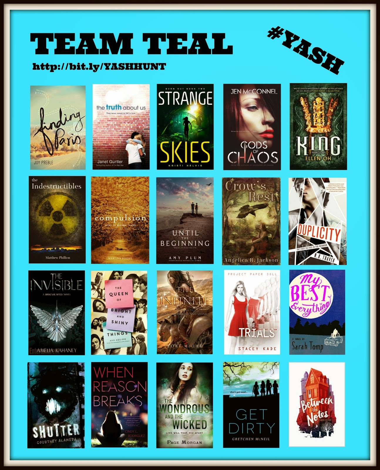 It's finally time! The Spring #YASH is on and I'm on team green! This bi-annual event was first organized by author Colleen Houck as a way to give readers a chance to gain access to exclusive bonus material from their favorite authors...and a chance to win some awesome prizes! At this hunt, you not only get access to exclusive content from each author, you also get a clue for the hunt (a certain number that will stick out). Add up the clues, and you can enter for our prize--one lucky winner will receive one signed book from each author on the hunt on my team! But play fast: this contest (and all the exclusive bonus material) will only be online for 72 hours! There are EIGHT contests--one for each team-- going on simultaneously, and you can enter one or all! Each teams features 20 different authors totaling up to 120 books to be given away to 8 lucky winners.