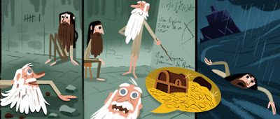 Conste que yo no sabía nada de onomásticas ni celebraciones, pero lo cierto es que en aquellos días yo terminaba mi lectura, por primera vez, de El conde de Montecristo en la edición de Random House que pueden ver sobre estas líneas. Como este año debí quedarme "castigado" en casa sin poder viajar a la Madre Patria, España de mis amores, los pucheros de mamá, mis vermuses y mis tebeíllos, pues decidí pasar un poco la depresión y el encierro propiciado por el mefítico Covid-19 leyendo uno de esos novelones que uno no puede leer nunca por razones de tiempo. Seamos sinceros: la vida profesional impide tener la concentración y exclusividad para leer novelones como El conde de Montecristo, Fortunata y Jacinta, Los miserables, el Jing Ping Mei, Los gozos y las sombras y otras muchas obras maestras que a veces superan las mil páginas. Uno va leyendo libros que elige por aquí y por allá, más breves y accesibles, y al final va dejando para el final (la jubilación, o el encierro causado por una pandemia), los novelones fundamentales, los que cuando están bien escritos te agarran de las pelotas y no te las sueltan hasta que terminas; los que te obligan a pasar el día deseando volver a tomar ese libro entre las manos; los que hacen que te olvides de todo lo que te rodea en cuanto los abres. Novelas río, llenas de vidas y acontecimientos. El Conde de Montecristo tiene un argumento más o menos conocido, aunque no tanto como El Quijote, novelón máximo que nadie necesita leer porque todo el mundo sabe de qué se trata (por eso tanto político analfabeto lo cita como su libro favorito). Aquí les comparto, en seis simpáticos doodles el argumento completo de El conde de Montecristo.