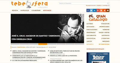 El año nuevo trajo dos nuevos artículos publicados en la revista española Tebeosfera. El primero es una larga entrevista con Griselda Cruz, hija del legendario editor, escritor y dibujante de historietas mexicano, José G. Cruz. En noviembre de 2015 me trasladé a Guadalajara, donde vive la familia Cruz, para desentrañar algunos de los secretos de este singular artista y editor. Pueden leer la entrevista clicando aquí: