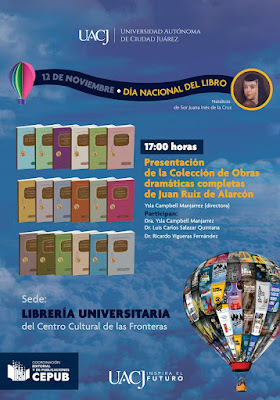 Hoy, como es el día nacional de libro y natalicio de Sor Juana, presentamos la colección dedicada a Juan Ruiz de Alarcón con todas sus obras y dirigida por la Dr. Ysla Campbell. También estará presente el Dr. Luis Carlos Salazar, responsable de la edición de "El semejante a sí mismo" y acá su seguro servidor, responsable de la edición crítica de dos obras, "El dueño de las estrellas" y "Ganar amigos". En la Librería Universitaria a las 17:00 o 5 de la tarde, la hora que más les guste. Prosit!July 19, 2024
