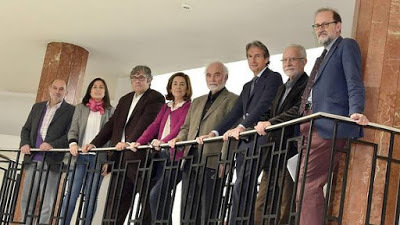 A finales de octubre me notificaron el sorpresón de que había ganado el Premio Internacional de Novela Fantástica Tristana, el cual se concedía por octava ocasión. La novela con que participé es inédita, No habrá Dios cuando despertemos, y se encargará de publicarla la editorial española Menoscuarto. Por supuesto, la noticia fue para mí todo un subidón. Ni qué decir tiene, me siento muy honrado de haber recibido este galardón, y muy feliz de que mi próxima novela aparezca en España. Parece que habrá distribución en México. Seguiremos informando. Esto me ha obligado a hacer maletas tempranamente, pues el día 10 debo recoger el galardón en Santander, España, y después de ello pasaré en Murcia mis habituales vacaciones navideñas en compañía de la familia. Agradezco mucho al jurado que se inclinara por mi novela entre otras 270 de varios países. El jurado estuvo integrado por el novelista José Manuel de Prada, Blanca Berasategui (directora del suplemento El Cultural del periódico El Mundo), el novelista y exdirector del Instituto Cervantes de Londres, Juan Pedro Aparicio y Enrique Álvarez, jefe del Servicio municipal de Cultura. De Prada, Berasategui y Aparicio son el tercero, cuarta y quinto de la foto empezando por la izquierda. Enrique Álvarez es el primero empezando por la derecha, y a su lado está José María Merino. Gracias por confiar en mi obra.Más información, clicando aquí tal como recogió la noticia el diario español 20 MINUTOS.