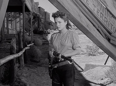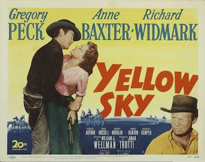 Magistral película, cine de antes, sin grasa ni manteca. Los actores son de los que llenan la pantalla con interpretaciones duras, concisas y vibrantes. Y cuenta con Anne Baxter, la nieta de Frank Lloyd Wright: una de esas actrices complejas y versátiles que conocieron la fama pero a quienes el tiempo escamoteó su propia mitología. El guión lo firmó Lamar Trotti sin coautoría, basado en una historia del gran autor de novela negra W.R. Burnett, y también fue el productor, de lo que se deduce que la solidez del trabajo vino acompañada de esa responsabilidad autoral. Trotti ya había colaborado con Wellman en otro wéstern maldito considerado hoy entre los mejores de la historia: el duro alegato contra el linchamiento Incidente en Ox-Bow (1942). Además, Wellman está soberbio en el uso de la cámara y de los escenarios (el desolado pueblo Cielo Amarillo) y saca un provecho enorme a las posibilidades expresionistas de interiores en la fotografía, así como en los exteriores quemados por ese cielo amarillo, como en las agónicas escenas que transcurren en el desierto salino. No lanzaré parabienes de Gregory Peck o Richard Widmark, que están inmensos como casi siempre, sino del magistral John Russell en el que, para mi gusto, es el mejor personaje masculino de la película: el maníaco sexual Lengthy, que sólo piensa en lo que esconden las mujeres y que se la tiene jurada a la Mrs. De Winters que Hitchcock descartó por jovenzuela.
