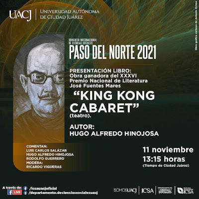 Esta noche presento en Mazatlán, dentro del marco de la Feria del Libro de la Universidad Autónoma de Sinaloa (FELIUAS 2022) mi libro Aquí es frontera de lobos. Ciudad Juárez como territorio mítico, del western a la narcoficción. Esta es mi primera salida en dos años a una feria de libro, así que estoy muy contento. Quedan cordialmente invitados. Recuerden que pueden descargar el libro de manera legal y gratis desde esta liga: