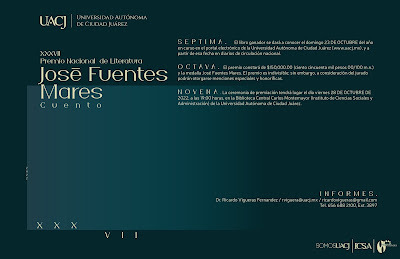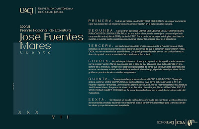 CONVOCATORIA ABIERTA: XXXVII PREMIO NACIONAL DE LITERATURA JOSÉ FUENTES MARES: CUENTO