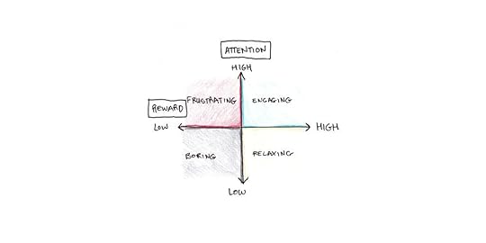 It feels effortful to do an activity that demands a lot of attention but doesn’t offer much reward. We may feel bored or amused by an activity that demands little attention, but it won’t feel hard. In contrast, it feels engaging to do an activity that demands a lot of attention and is highly rewarding.