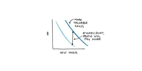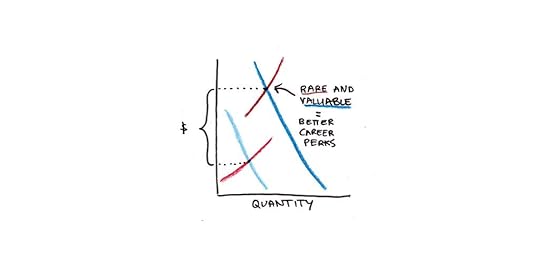 This curve can be a useful way to think about the value you offer to other people. In the job market, your career capital is valuable if people are willing to pay more for it. A higher-value set of career capital can be represented by the demand curve shifting to the right—more people want someone with your career capital for any particular price.