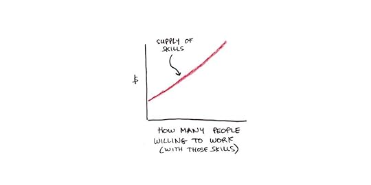 Similarly, the supply curve for your career can be envisioned as the number of people who are willing to supply that career capital (the horizontal axis) for a particular wage (the vertical axis). As the price goes up, more people are willing to supply those skills, connections, reputation and other assets that people want.