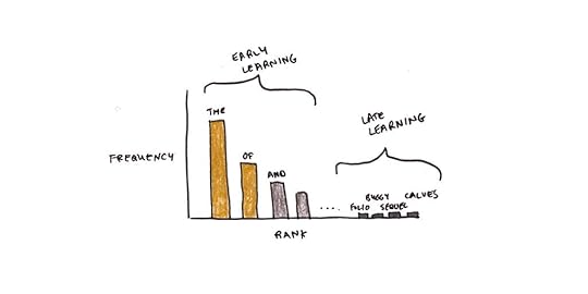 Consider a highly simplified model of language learning, where the only thing that matters are the words you have in your lexicon. According to Zipf’s Law, the usage frequency of a word is roughly proportional to the inverse of its rank in an ordered list of usage frequency.