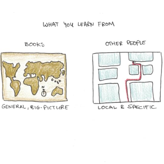The first is that books tend to offer general advice, but what you need is often highly specific. You don’t just need advice on “success” but exactly who to reach out to in your company to move your career forward. Books offer an atlas, but what you need is often a tour guide.