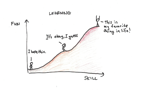 Throughout my book, I argue that there are principles of learning which exhibit a common pattern: something that is hard to do, requiring more mental effort or being a bit scarier or more frustrating, is nonetheless more effective for learning than something easy.