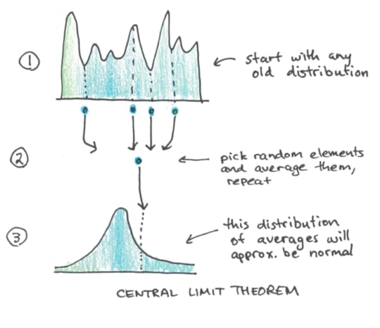 The answer is that normal distributions come out of a process of averaging. A neat little idea from statistics known as the central limit theorem says that if you take any distribution you like (it doesn’t have to be normal) and pick groups of random elements from that distribution and then take their average and, voila, you get a normal distribution.