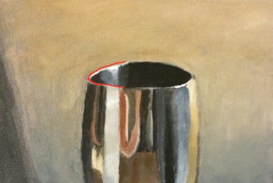 The starting point, as always, is to see how the curve really is. If you had to draw tangent lines on its surface, what would they be? Does it form corners, or does it stay curved the whole way? A common mistake when drawing vases in still lifes is to kink the corners at the end, not recognizing that it will form an ellipse instead.